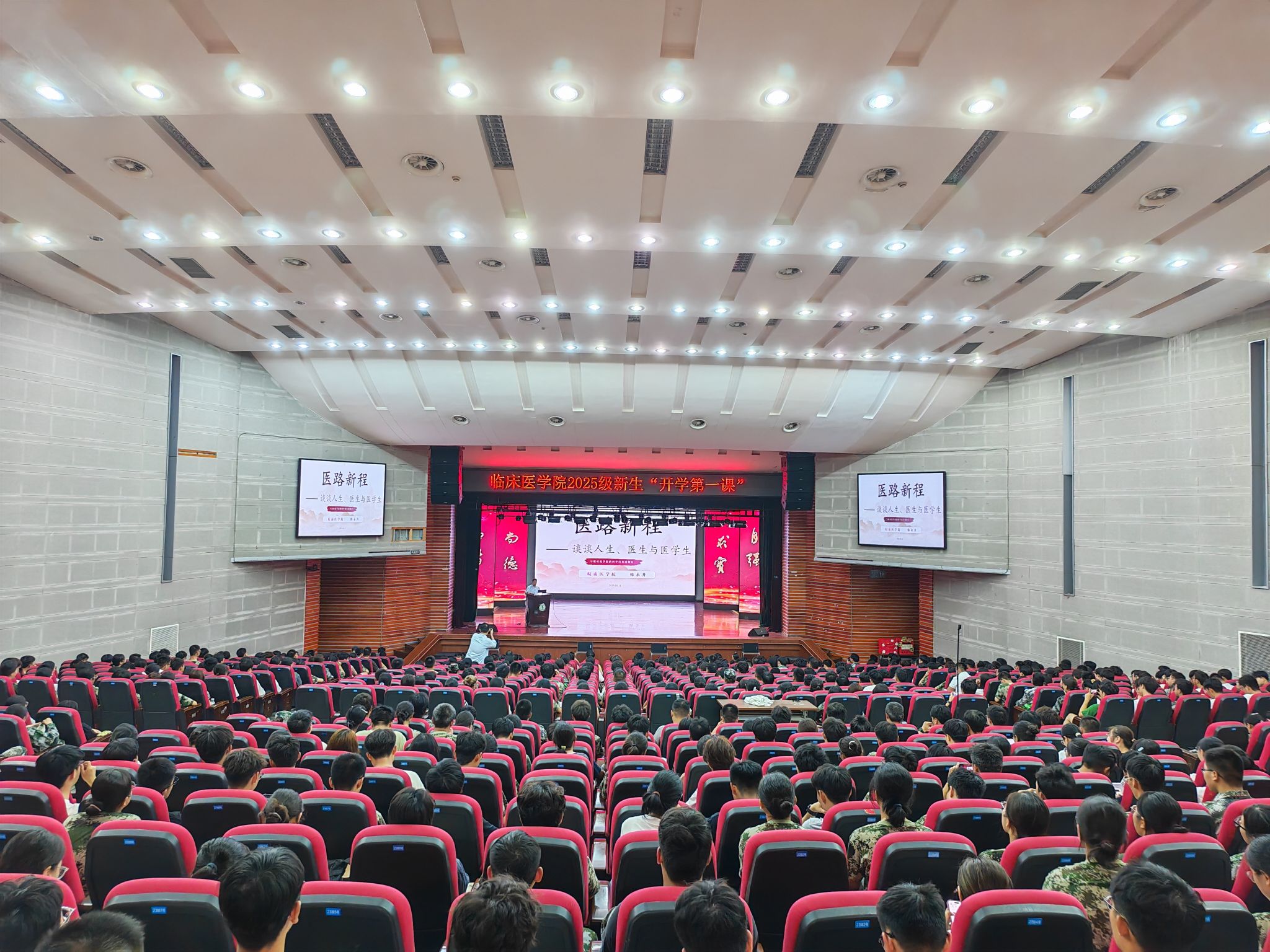 为深入学习贯彻习近平新时代中国特色社会主义思想、党的二十大和二十届三中全会精神,进一步落实习近平总书记关于青年工作的重要思想,为青年大学生提灯引路、扣好人生的第一粒扣子,9月11日晚19时,校党委常委、副院长韩永升以“医路新程:谈谈人生、医生与医学生”为题,为临床医学院2025级全体新生讲授“开学第一课”。