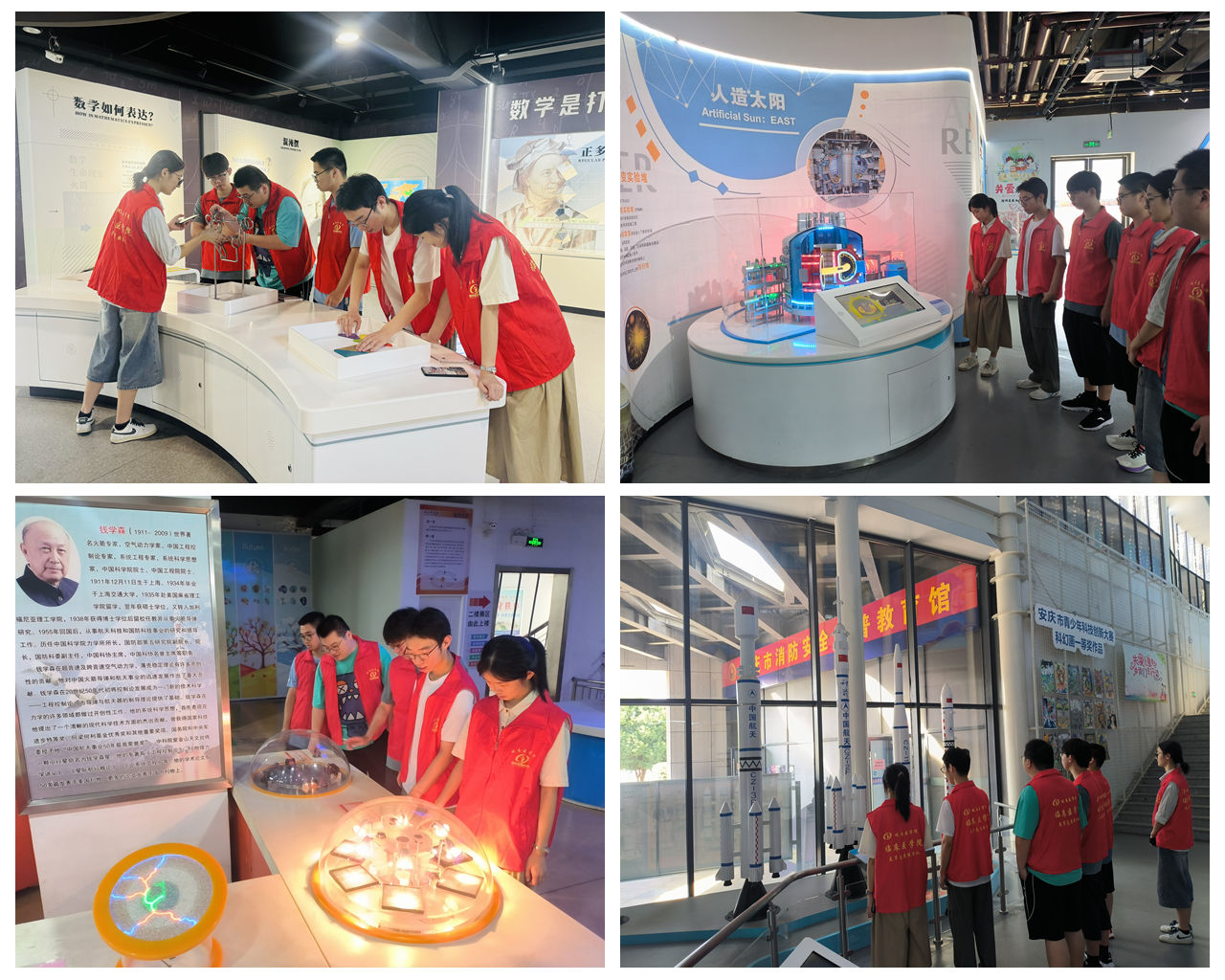 探科技前沿,拓专业视野。8月20日上午,志愿服务队前往安庆科学技术馆进行参观。队员们系统观摩了数学、物理、航空航天等领域的科普展项,通过实物模型和互动体验,直观了解我国科技前沿进展,进一步激发科学探索与跨学科学习的兴趣。
