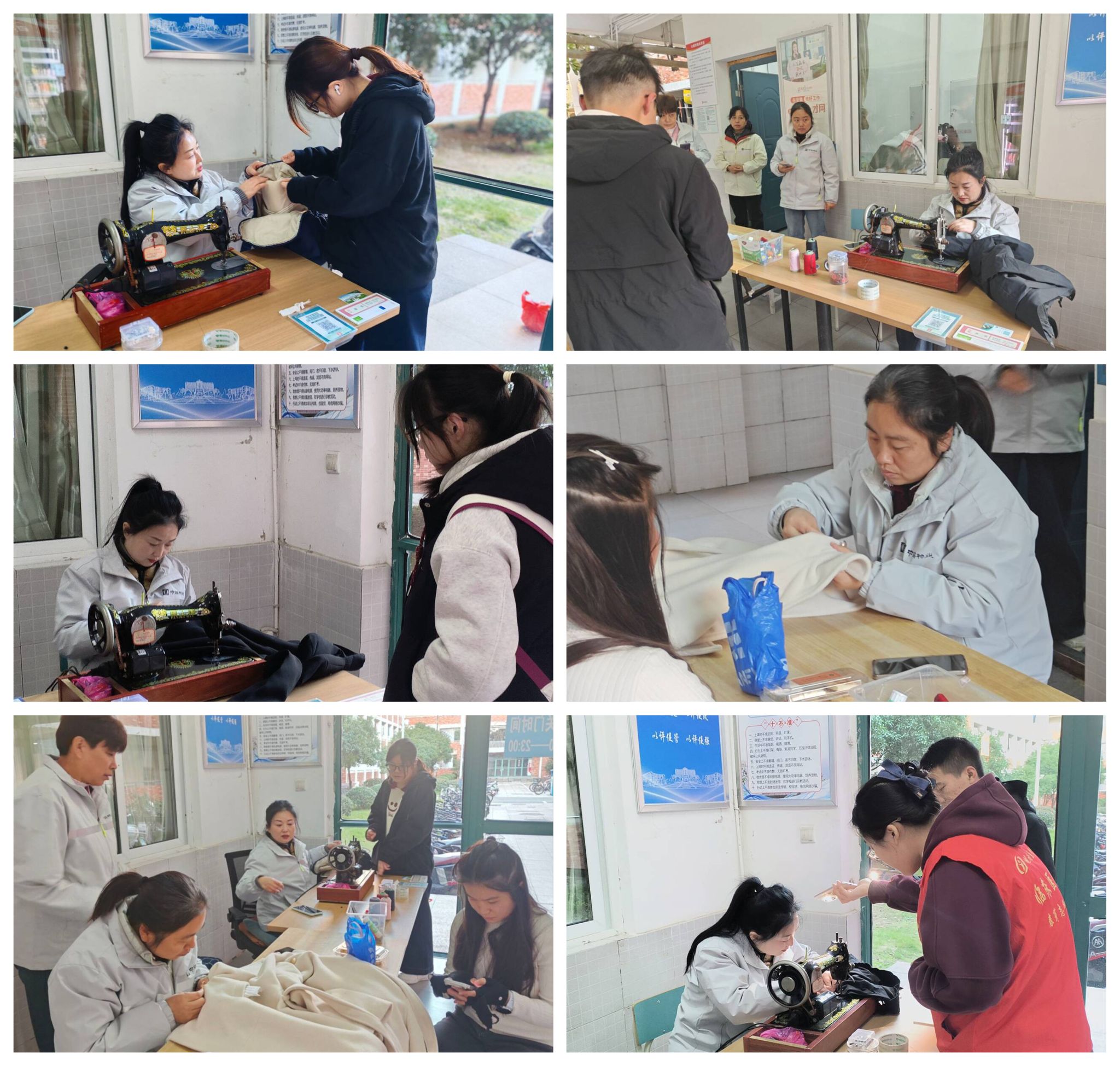 爱心缝补,织就生活服务“暖心网”。活动期间,同学们将需要缝补的衣物送到现场,物业阿姨们根据不同的材质和损坏情况,凭借娴熟的技术为同学们缝补衣物、加固纽扣、修复开线等;学生志愿者协助做好人员引导、物品登记等工作,保障服务高效有序开展。此次服务帮助学生解决衣物破损问题,以“微服务”传递校园关怀,获得学生一致好评。