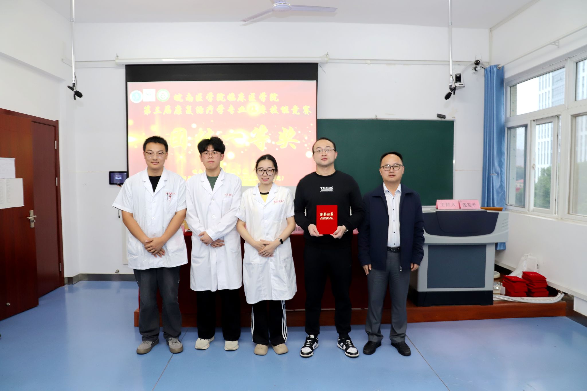 本次比赛既全面检验了学生的理论知识水平、岗位胜任能力、临床思维和技能操作水平,又为各实践教学基地及实习生搭建了展示和相互学习交流的平台。未来,临床医学院将继续本着“以赛促教、以赛促学、以赛促改、以赛促建”的原则,推动康复治疗学专业人才培养模式的创新,培养高素质应用型医学专门人才。(白桂峰/文 王静/摄)