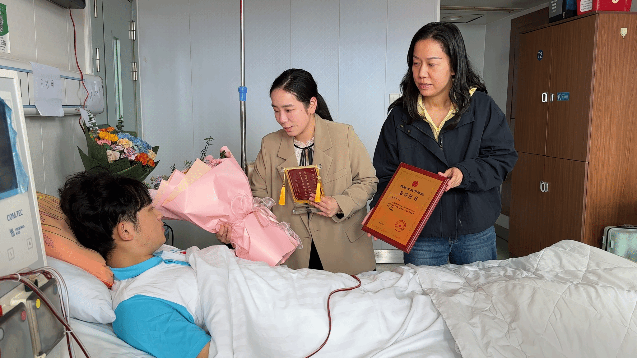 10月22日,葛凌风入住我校第一附属医院血液内科。连续5天的动员剂注射期间,他每天记录身体反应,主动向一附院的医护人员请教注意事项。同时,学校和一附院全力保障捐献过程的安全顺利,学校领导多次关心并询问情况,临床医学院和相关部门积极协调葛凌风同学的学业与生活,一附院医护团队密切关注其身体状况,年级党员自发组建“陪护小组”开展日常照料。多方力量的紧密协作,不仅为捐献工作的安全推进提供了坚实保障,更让葛凌风同学深切感受到“医校同心、师生同行”的温暖力量。